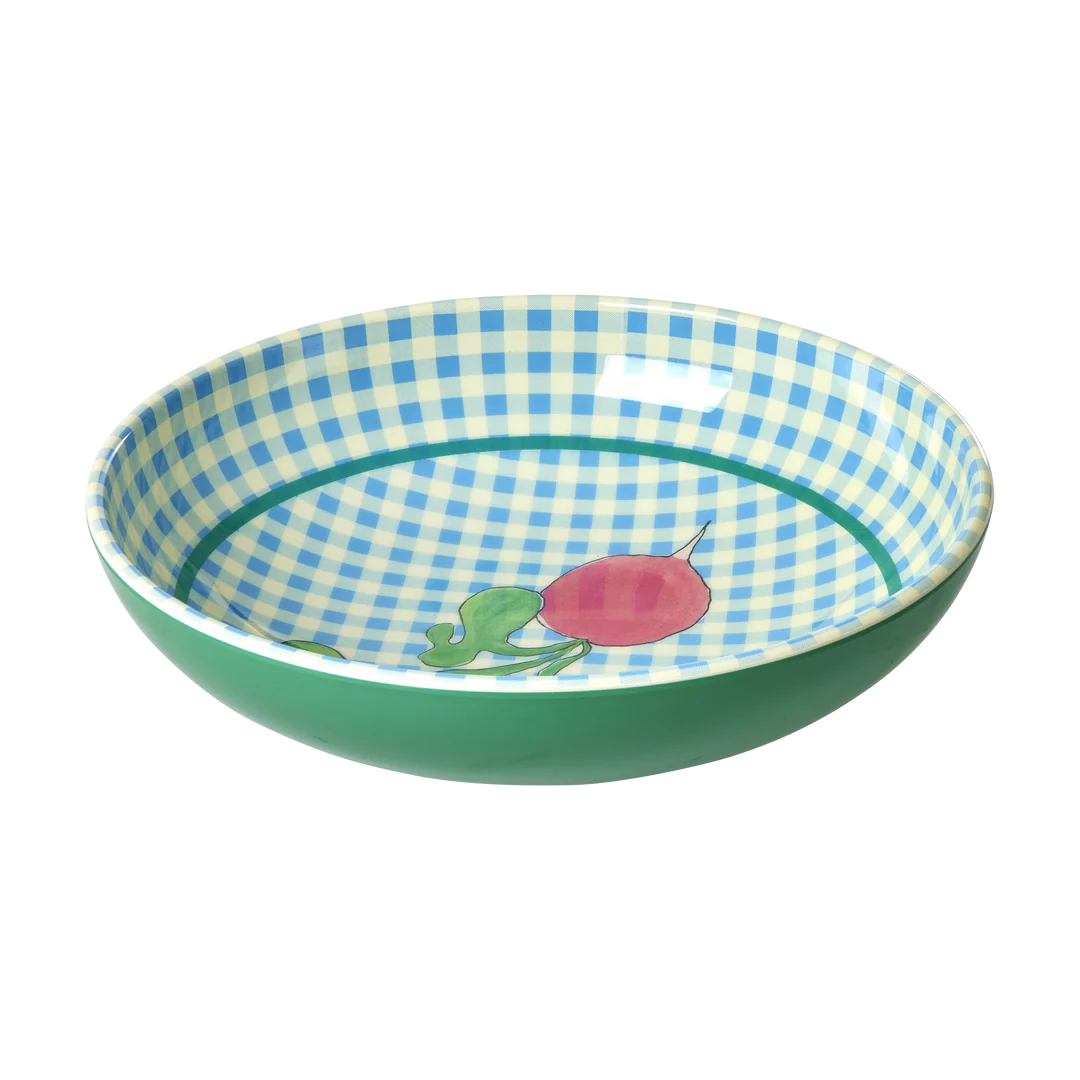 Le grand saladier en mélamine dans l’amusant motif “Ravishing Radish” est pratique pour tout... pour une salade ou peut-être pour pétrir une pâte... ou encore pour ranger certains de vos effets personnels. Utilisez-le selon vos besoins !